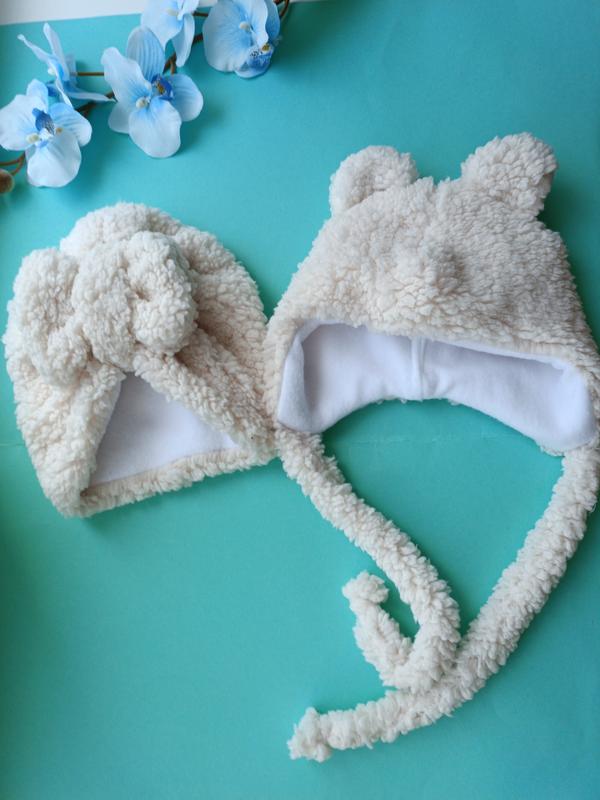 Тюрбан зимовий для новонароджених тедді вушками шапка на флісі