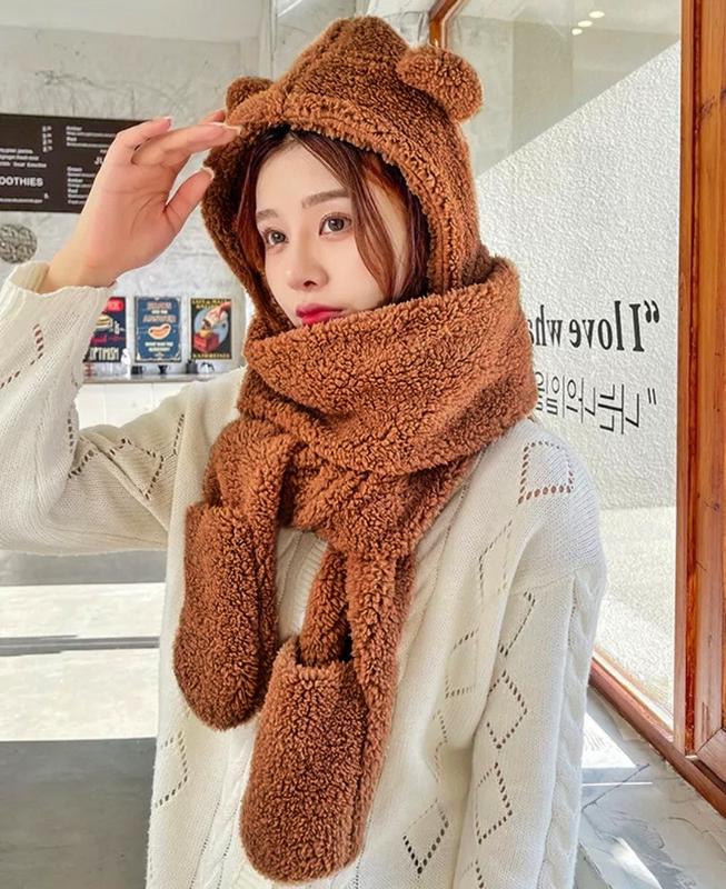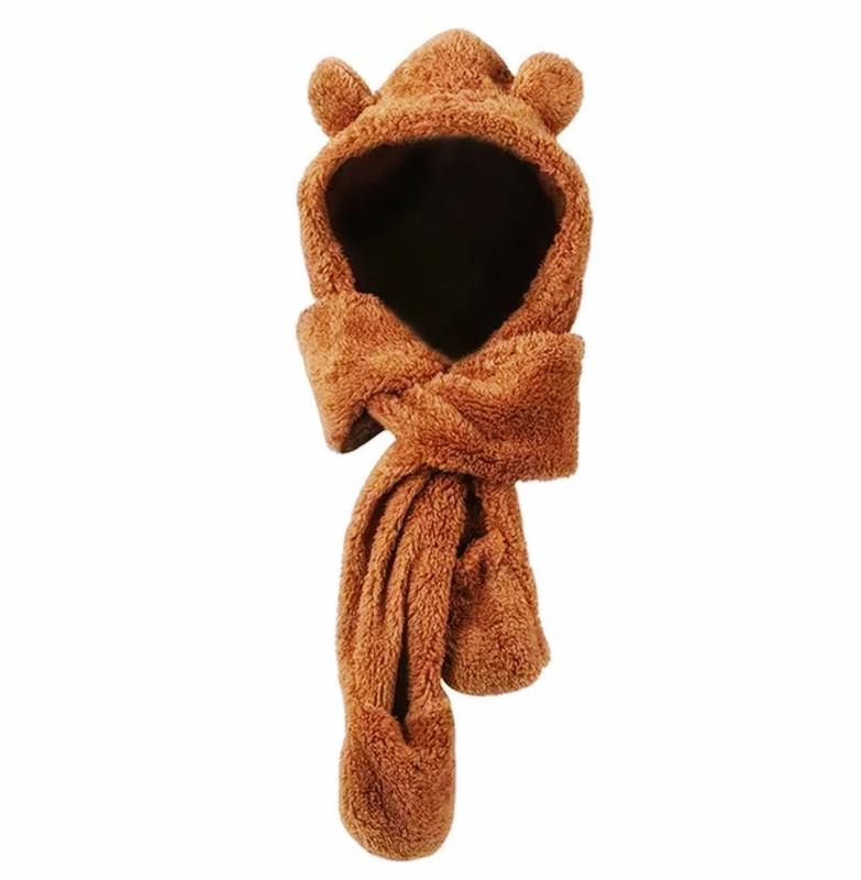 Шапка-шарф з вушками 3 в 1 (ведмедик, ведмідь, капюшон, рукавиці) з