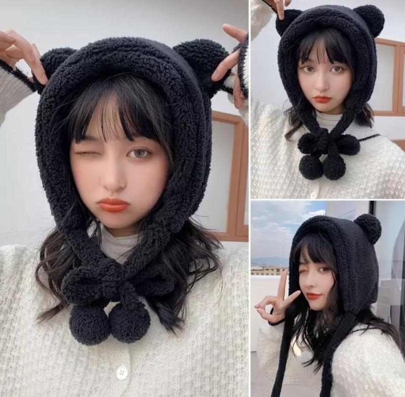 Шапка-вушанка Панда з вушками (Ведмідь, Ведмідь, Капюшон) із зав'язками,