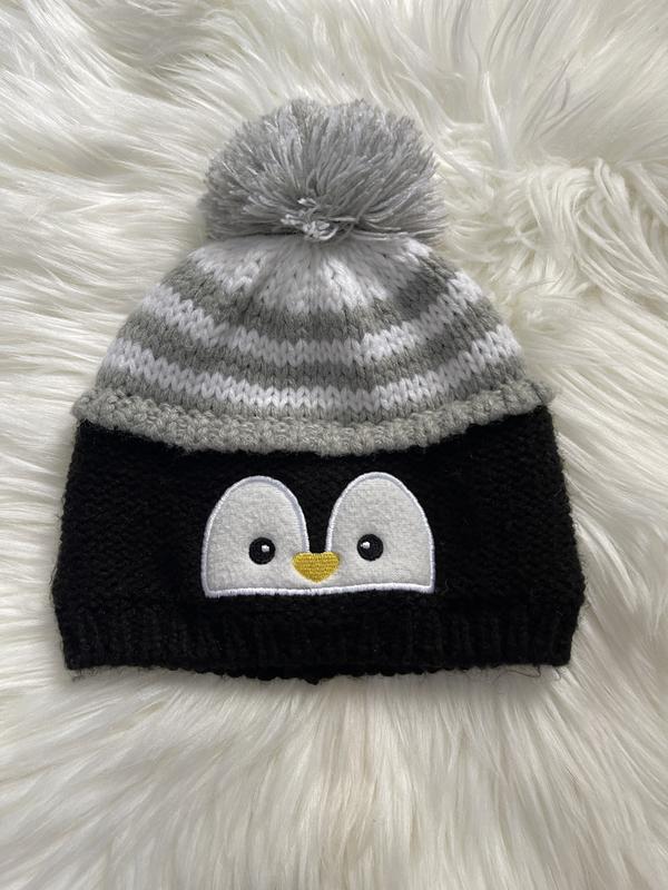Шапочка для хлопчика з пінгвіном F&F, всередині фліс, стан нової на вік - до 3 місяців