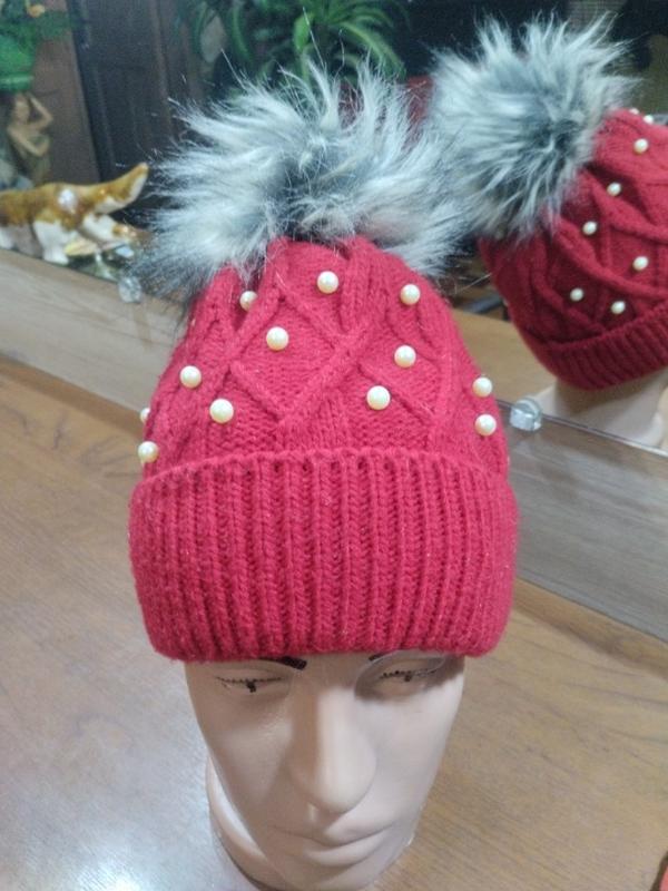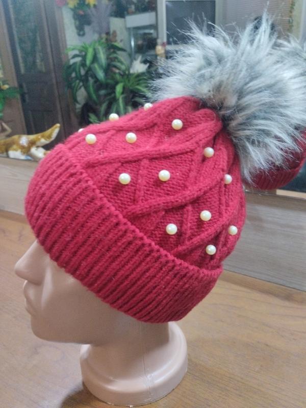 Симпатична в'язана шапка з пумпоном дуже тепла на утепленій підкладці, заміри уточнюйте в переписці.