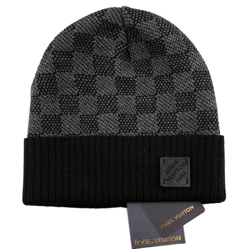 Шапка чорна в карту в'язана чоловіча Louis Vuitton Шапка зимова Луї Вітон Люкс якість