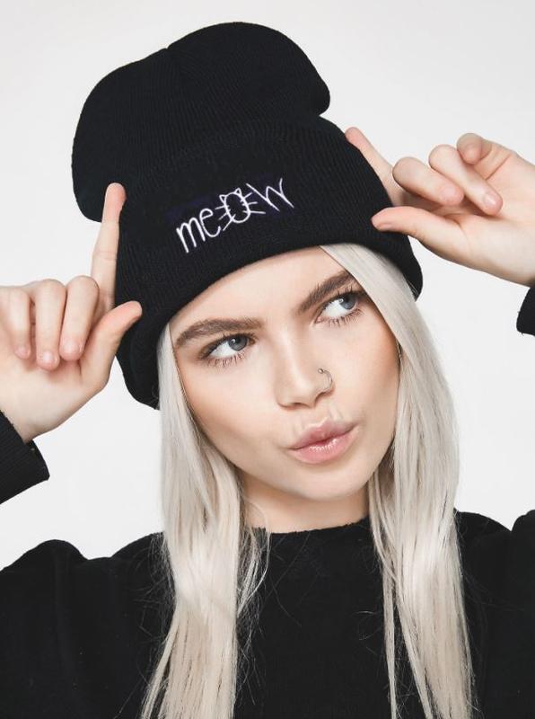 Шапка бини женская Meow с отворотом