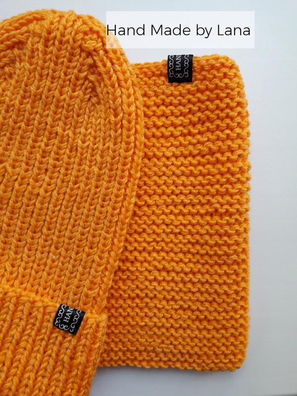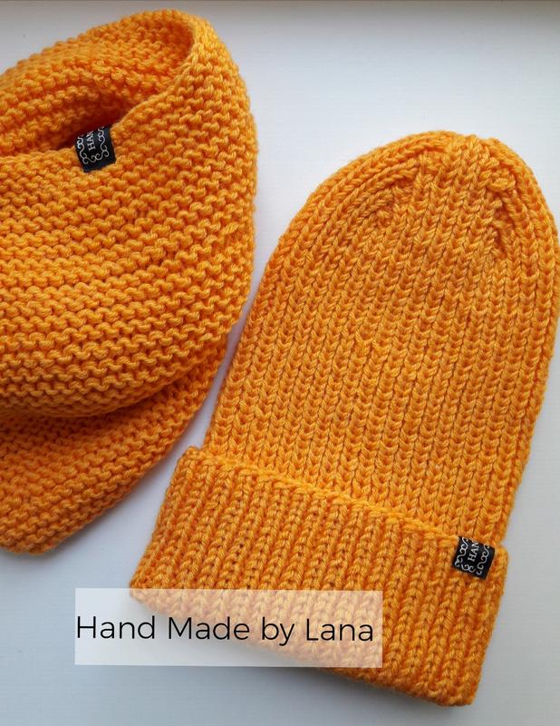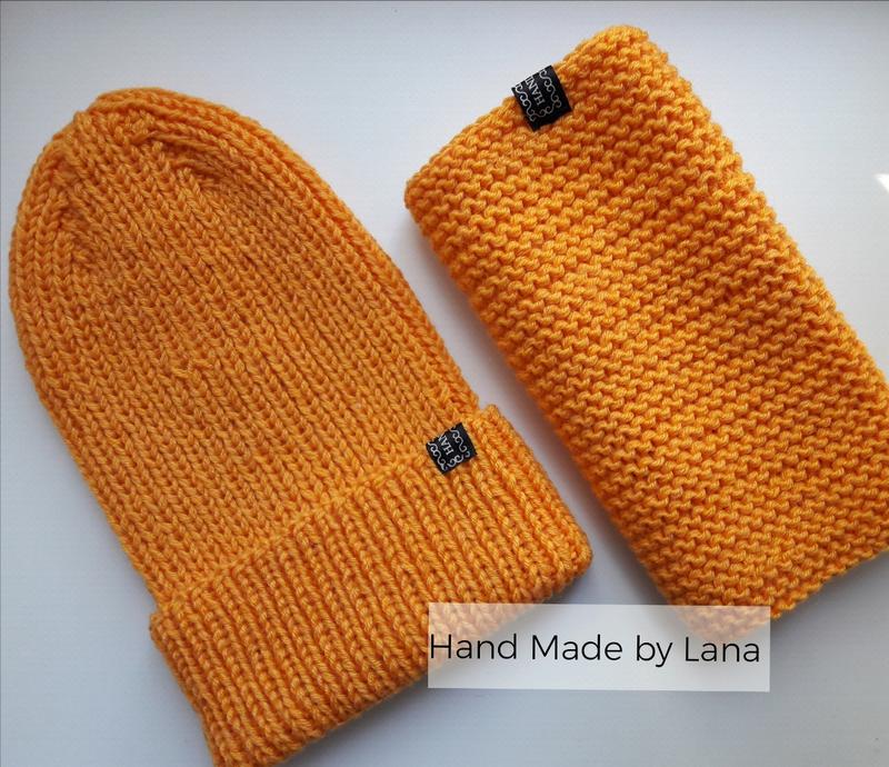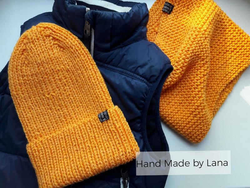 Набір шапка+шарф зимовий жовтий гірчичний теплий зимовий