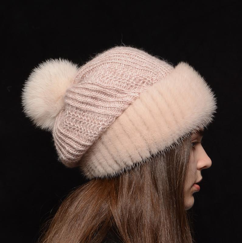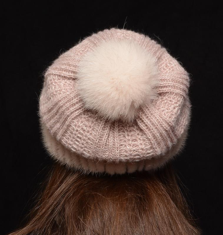 Жіноча в'язана шапка з бубоном з нашитою смугової з хутра норки , в наявності більше 25 кольорів, так само є можливість придбати комплект шарф + рукавички + шапка, так само можна зробити замовлення на індивідуальне пошиття хутряного вироби з хутра : нірки,ондатри,песця,чорнобурки,кролика на ваш розсуд , різноманітність кольорів хутра дуже більше , уточнювати в лс