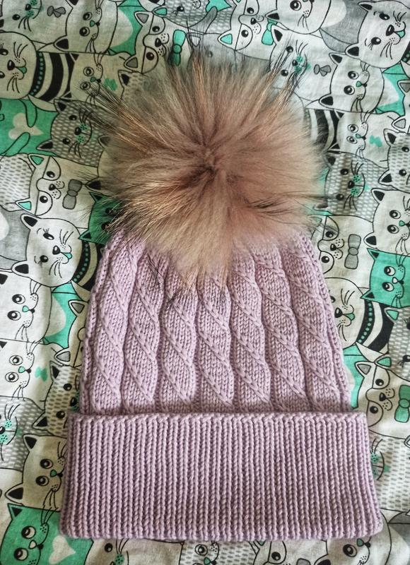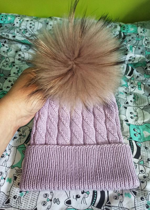 Шапочка ручної роботи з 100% мериноса,помпон песець(ціна вказана з урахуванням помпона)На ОГ 56-58 см