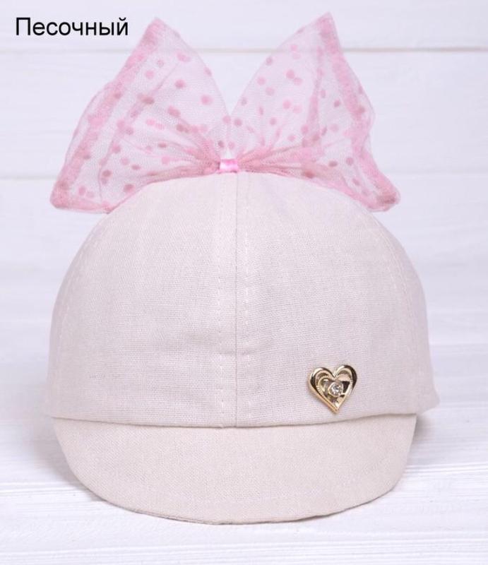 Кепка для дівчинки з бантиком з сітки. Завдяки тканини, з якої зшитий кепочка, Ваша дитина буде почувати себе дуже комфортно. У такому головному уборі можна гуляти кожен день, адже льняні вироби забезпечують надійний захист від сонця і добре пропускають повітря. Щоб кепка добре трималася на дитячій голові, на її потиличної частини є спеціальна липучка, з допомогою якої можна регулювати розмір. Обхват голови: р. 50 - 48-50 см (2-3 роки) Розміри: Дані про вік приблизні, так як кожна дитина індивідуальна. Рекомендуємо зробити заміри голови Вашої дитини (кружность голови ) і на підставі Ваших вимірів підібрати кепку.