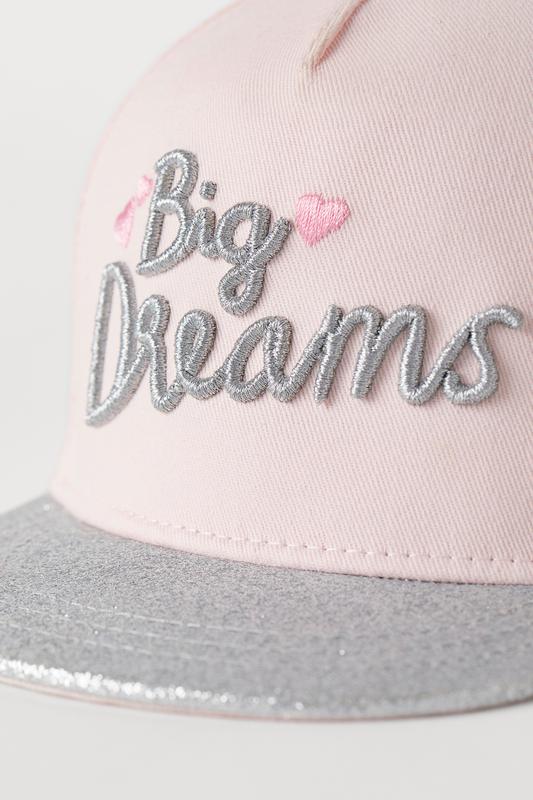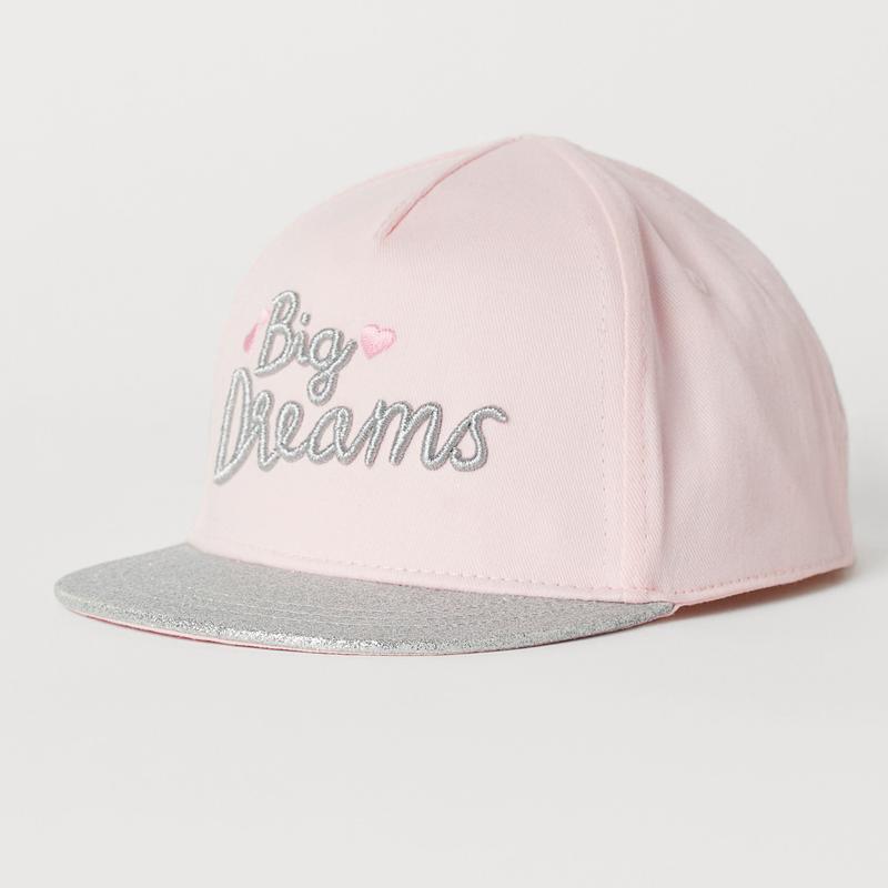 В наявності бейсболки для дівчат з веселим дизайном, фірми H&M (Швеція) Практичні кепки з бавовни для дівчат з веселим яскравим дизайном доповнять будь-який літній наряд, захистять від палючого сонечка та завжди підніматимуть настрій оточуючим. Кепка з тканини, оздоблена декором зпереду. Позаду присутня застібка-фіксатор для регулювання обєму. Розмір: 92/104 см, 1,5-4 років, обєм 50-51 см 110/128 см, 4-8 років, обєм 51-53 см 134/152 см, 8-12 років, обєм 53-55 см Склад тканини: 100% бавовна