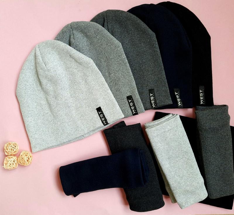 Стильні дитячі комплект. Шапка-біні та хомут з подвійного трикотажу Склад: 100% - котон Розмір 52-56,тягнеться висота -24 див.,ширина - 21см.