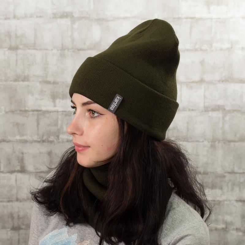 Комплект в'язана шапка з снудом унісекс хакі (22 кольору)
