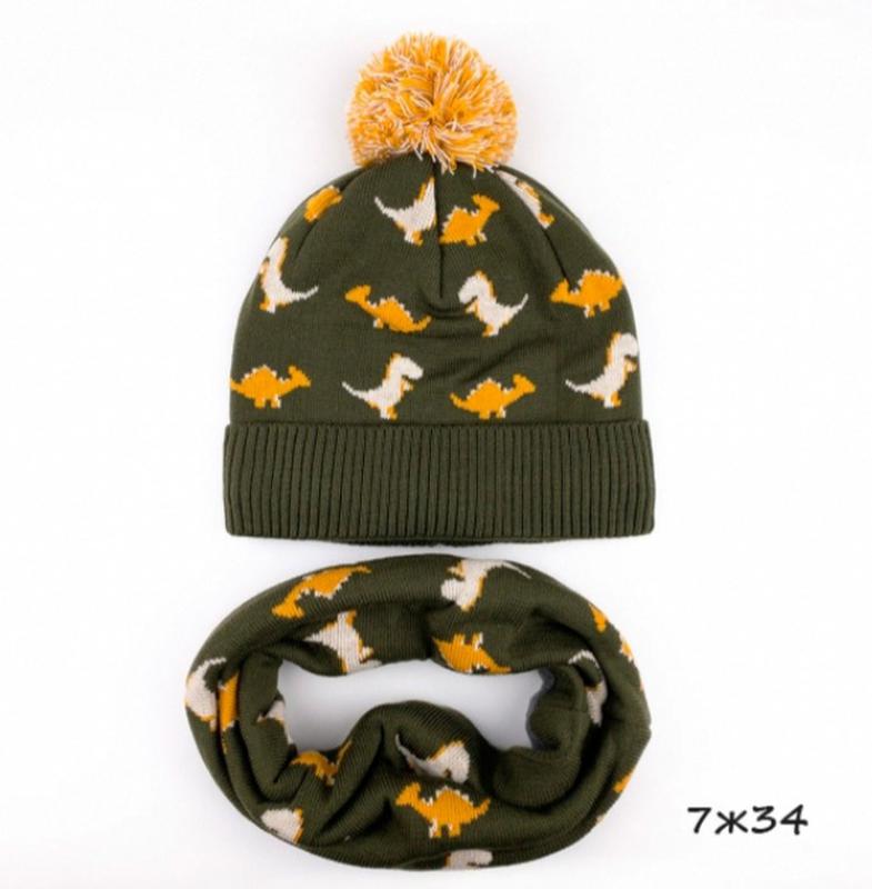 Зимова шапка і хомут, шапка з динозаврами, зимовий комплект діно