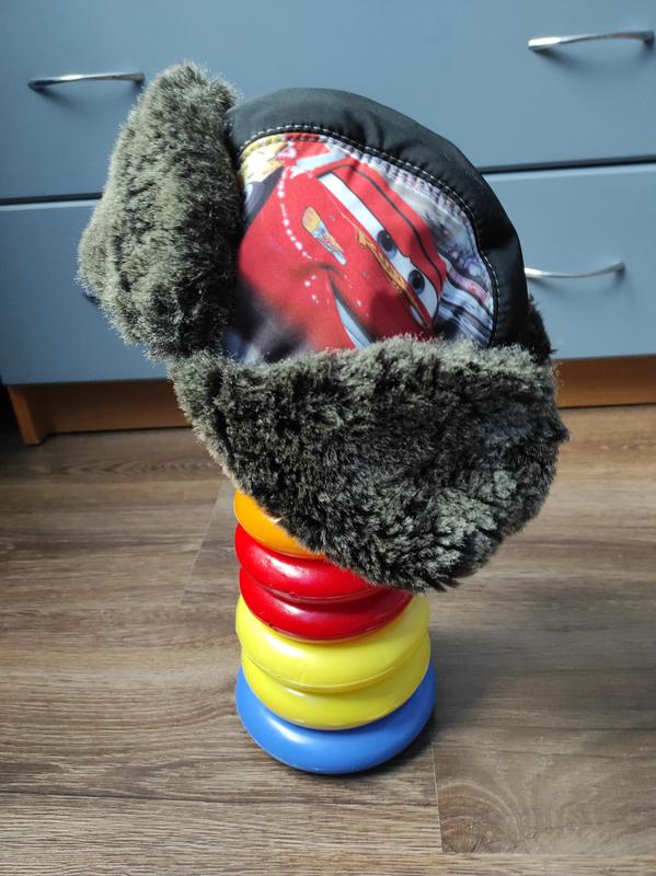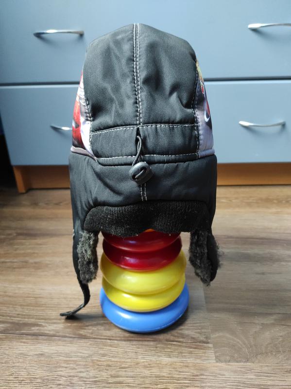 На обхват голови до 50 см. Всередині фліс. Дуже тепла. Можна носити двома способами. Ззаду є затяжка для регулювання розміру. В наявності так само синя.