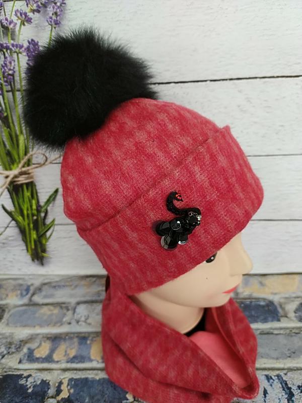 Утеплена набір на дівчинку , шапочка на утиплители байка + снуд також утеплений байкою. Красива брошка прикрашає головний убір. Чудово зігріє у холодну погоду Розмір 50, 52, 54