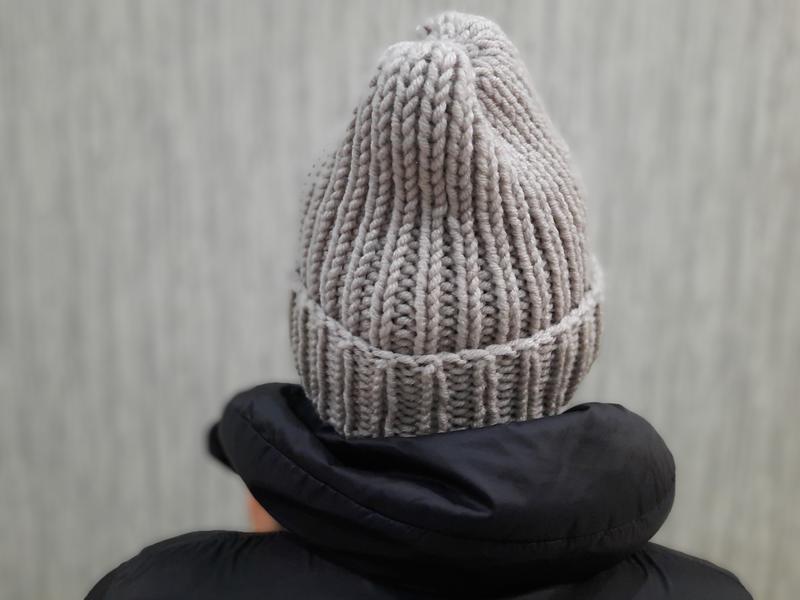 Вязаная шапка бини с отворотом, объемная, теплая