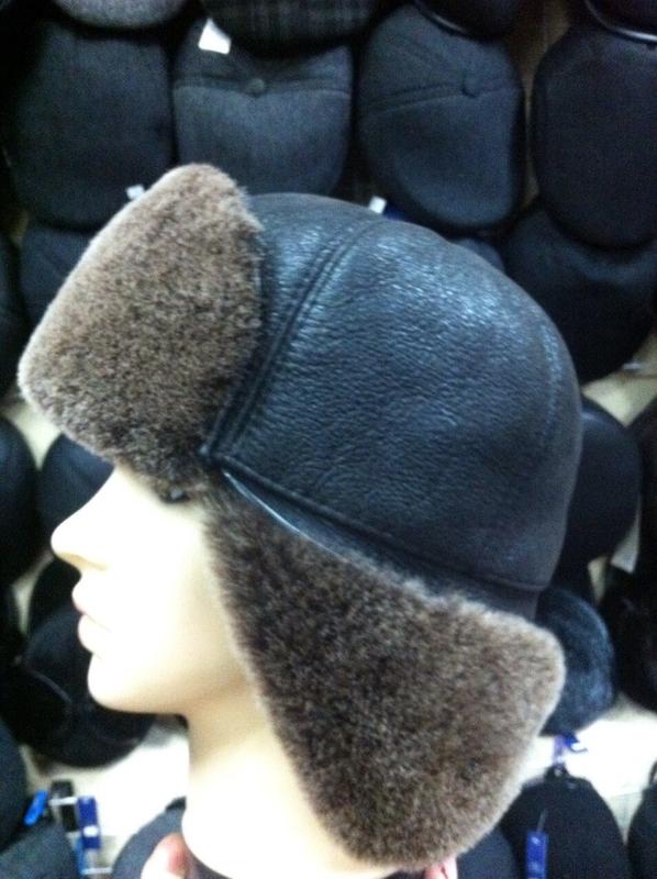 Класична, тепла, зимова чоловіча вушанка з натуральної овчини з довгим