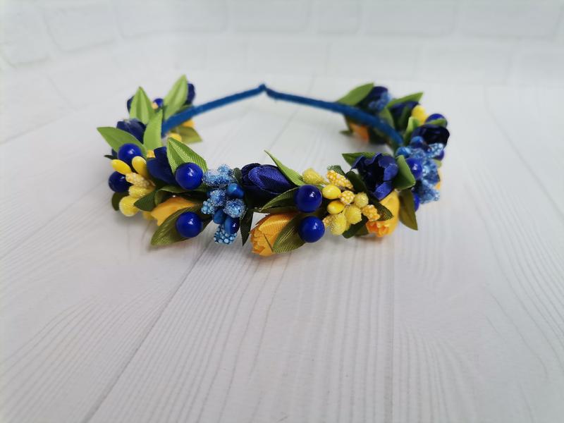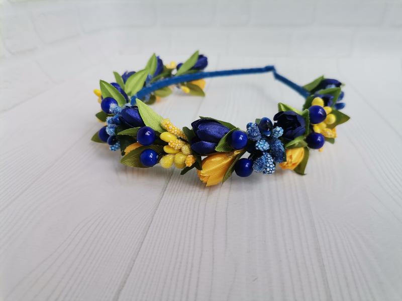 Вінок жовто-блакитний до вишиванки обруч з ніжними жовто-синіми квітами обруч патріотичний