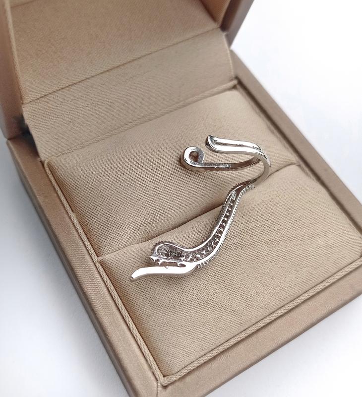 Коробочка на зображенні -це реквізит для фото. Прикраси не відправляються в ній, пакуються в подарунковому мішечку .В продажі є також подарункові коробочки (без лого) -представлені в каталозі товарів.