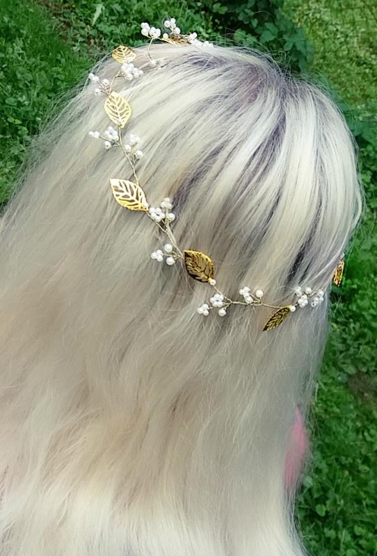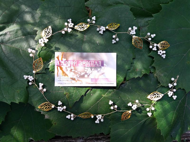 Гілочка в зачіску можна одягати як віночок або вплітати різними способами в зачіску кріпиться невидимками колір бежевий з золотом є безліч інших гілочок та прикрас дивіться мої оголошення)