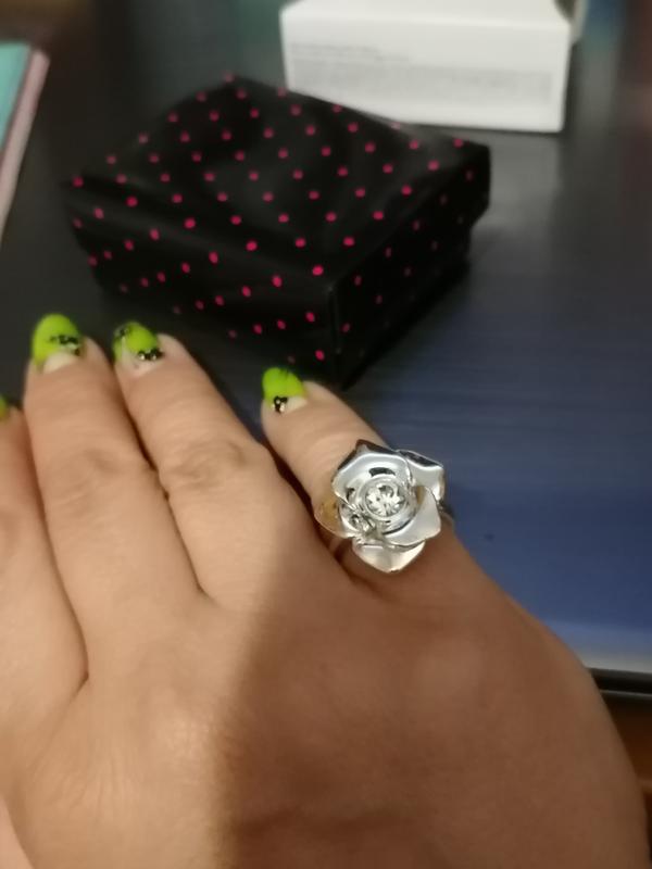 Кільце посріблене у вигляді троянди з фианитом. Прикрасить вечірній наряд на випускний, весілля або інше торжество.