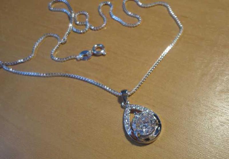 Подаруйте любов, радість собі, мами, дочки, сестри, подруги, коханої і світ стане краще. Дивовижний, чудовий кулон з кристалами кубічного цирконію: підвіска і ланцюжок. Метал: мідно-латунний сплав, покриття срібло, проба 925 стоїть і на кулоні і на ланцюжку. Ланцюжок з красивим сріблястим блиском. Розмір підвіски 2,3 див. на 1,3 див., розмір ланцюжка 45,5 див. Відмінна якість, чудова ограновування, глибокий і чистий блиск каменю, Ви залишитеся задоволені! Перетворіть свій наряд і образ яскравий і стильний з допомогою вишуканих прикрас!