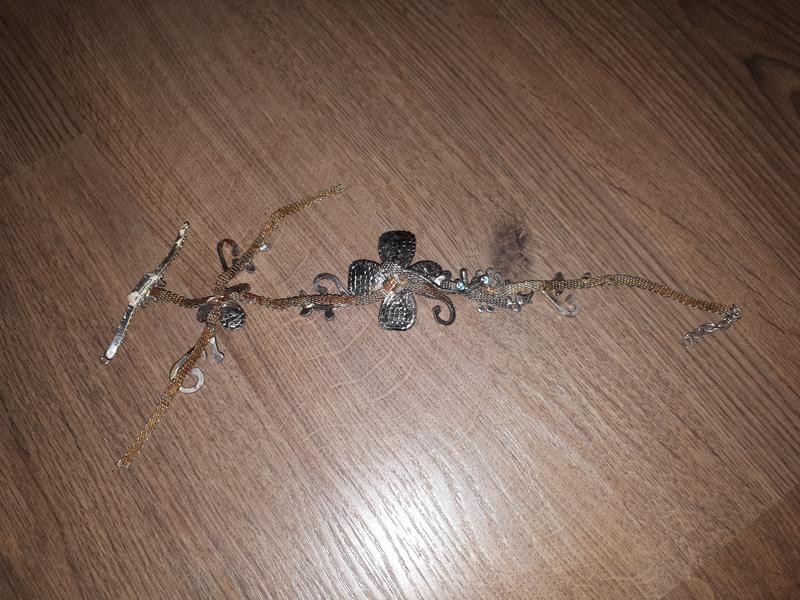 Продаю декоративный элемент для обуви или других вещей. Сделан из металла и и декоративных красивых камней. Изначально было верхней частью праздничных босоножек, но они сносились, а это осталось в отличном состоянии. Этим можно украсить те же босоножки, тапочки, другую обувь, а также сумку, косметичку, барсетку, куртку, джинсы и т.д., в принципе, все зависит от вашего воображения. Длина в растянутом виде - 32 см.