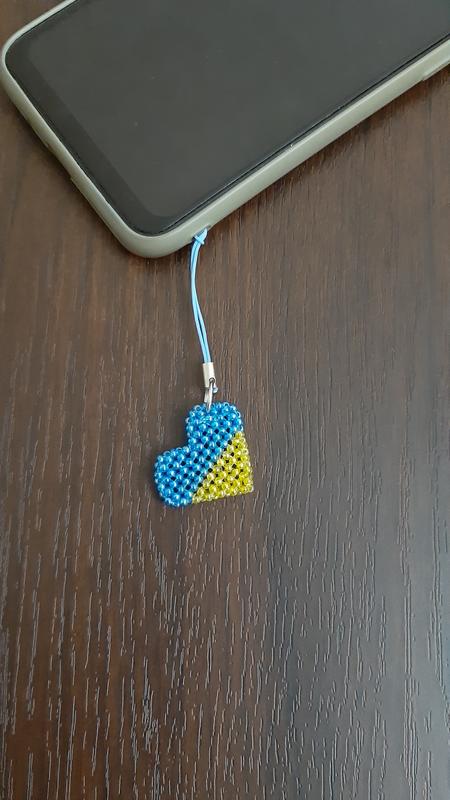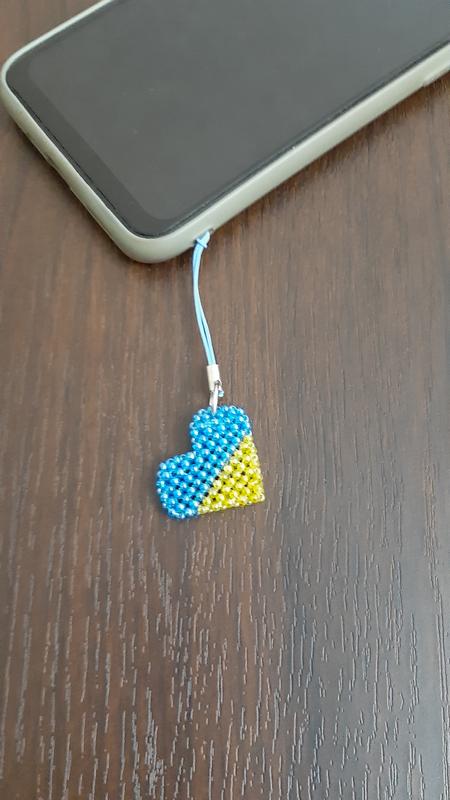 Брелок підвіска у формі серця з бісеру в кольорах прапора України, ручна робота.