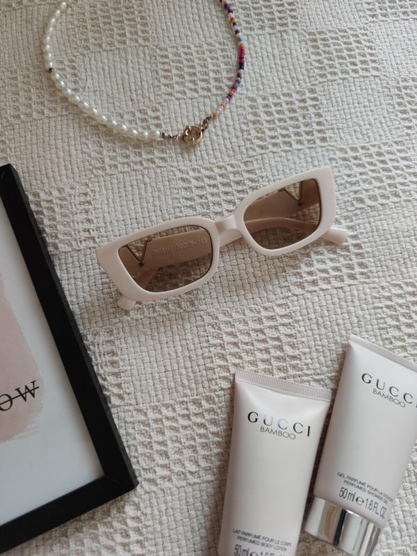 Актуальная модель- очки солнцезащитные, модель в стиле 90-х годов, в пластиковой оправе, с V-декором под Версаче. Качественные очки, не искажают, глаза\голова не болит, отличные отзывы клиентов)