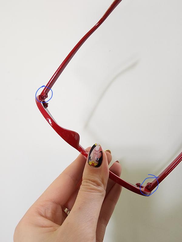 білі половинки брак на лінзі з внутрішньої сторони (2ге фото ) тріщини на кріпленнях дужок (3,4 фото)