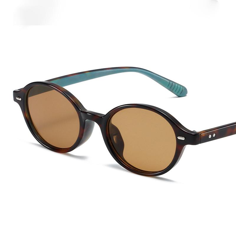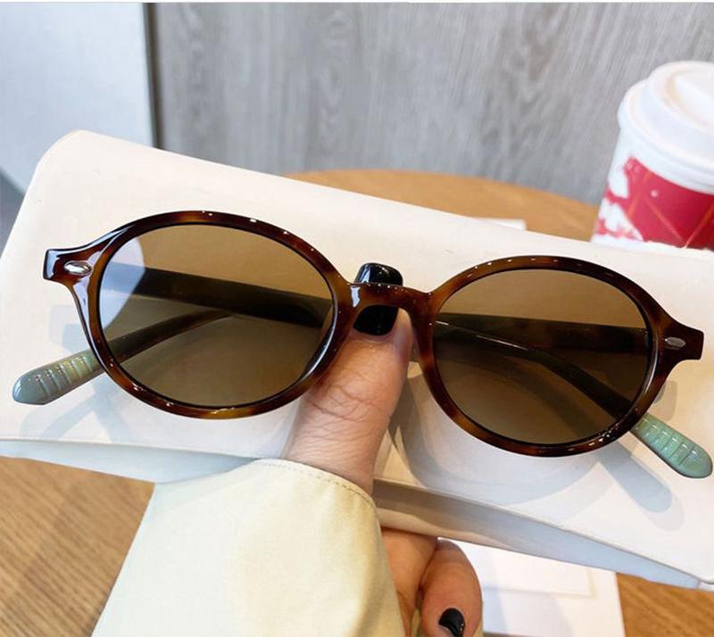 Окуляри мають круглу форму лінз та оправу з черепаховим візерунком, що додає їм стильного та ретро вигляду. Лінзи коричневого кольору гармонують з оправою, а зелені кінці дужок додають цікавий акцент. Такі окуляри можуть бути як модним аксесуаром, так і практичним засобом для захисту від сонця.
