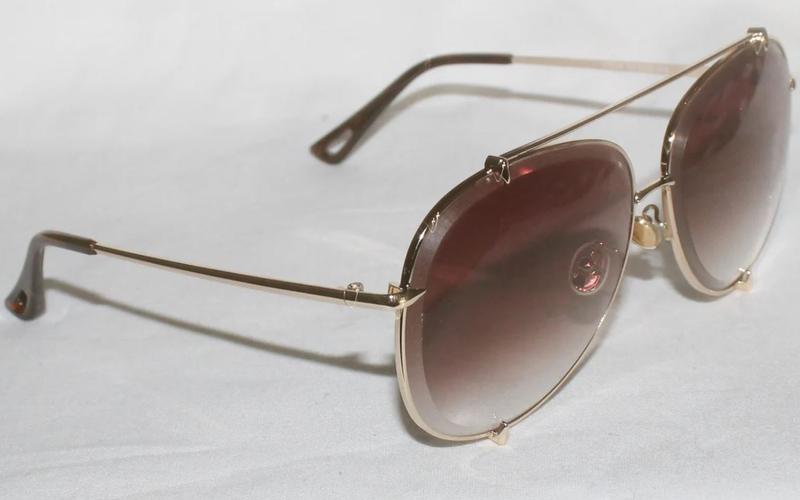 Ширина очок - 15,0 см Висота лінзи 5,5 см Ширина 6,3 см Оправа метал. Колір Золото Лінзи - полімерна лінза з багатошаровим покриттям високим ступенем захисту від УФ променів. Колір Коричневий