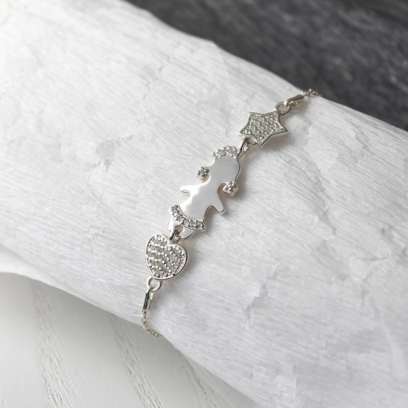 Миловидний срібний браслет "Дівчинка" буде чудово виглядати на руці Вашої дитини або молодої мами.