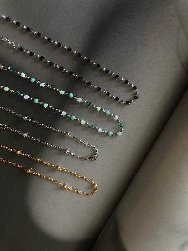 Анклети з камінцями у блакитно зеленому та чорному кольорі, сталь , не окислюється, довжина 21 см та додаткові 5 см
