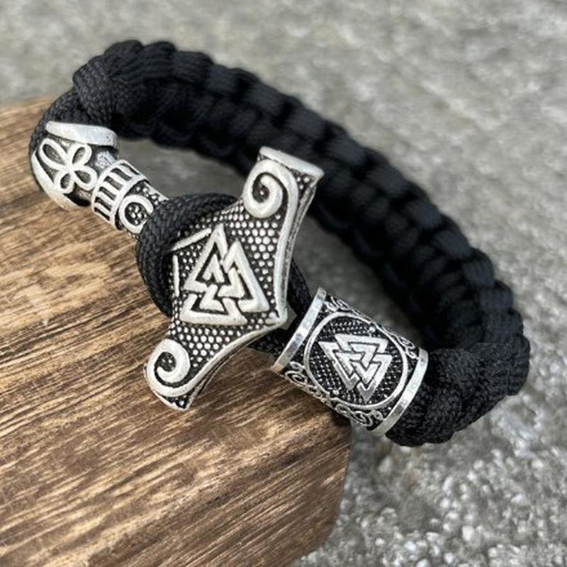 Браслет чоловічий із паракорду та сталі THOR VALCNUT BLACK чорний із молотом