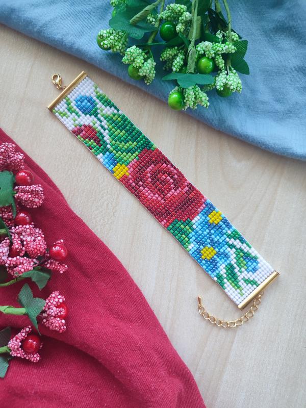 Браслет з бісеру орнамент або троянди | браслет з бісеру