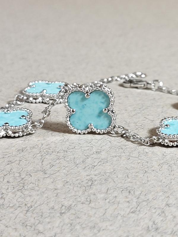 5 конюшинок бірюзового кольору, двосторонні. Дуже яскраве та незвичне, виглядає роскішно та вишукано.
