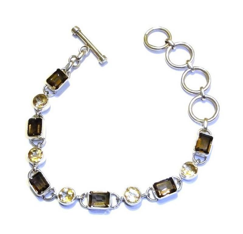 Браслет срібний. Вага 17,62 грам. Проба 925 (Українська пробірна палата). Вставки димчастий кварц — шість каменів, цитрин — п'ять каменів.