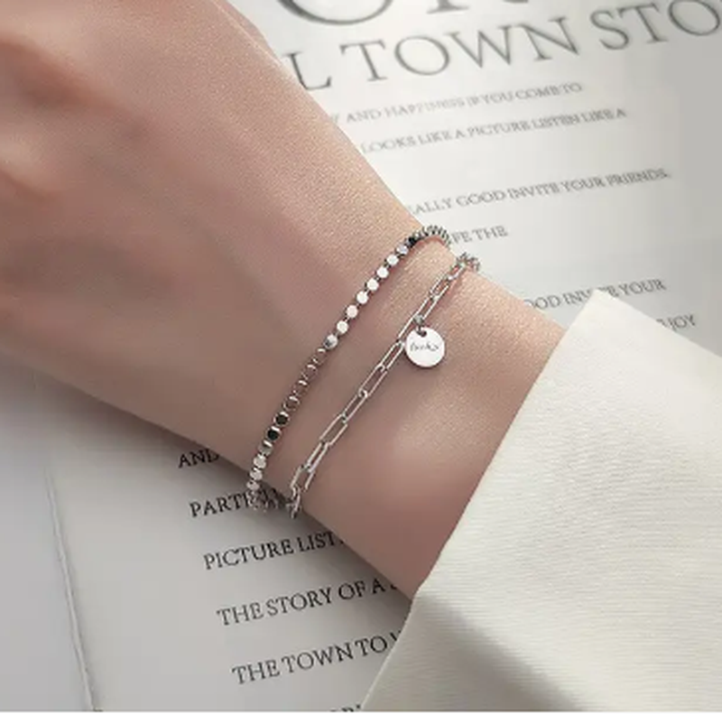 Браслет состоит из двух разных цепочек, ширина каждой 2 мм