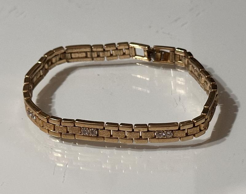 Браслет жіночий в золоті з камінцями. Красиво і дорого виглядає. Не темніє ! Якісний матеріал, не дешева біжутерія. Довжина — 19 см Застібається на застежці, міцно. Камінці всі на місці. Камінці справжні зі скла, не пластик. В живу ще краще виглядає. Ще є цікаві сережки у продажі. Не вдягався. Ідеальний стан, без дефектів