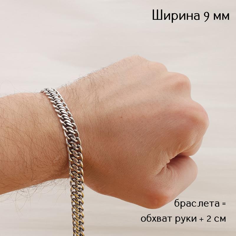 Широкий срібний браслет чоловічий бісмарк подвійний9 мм
