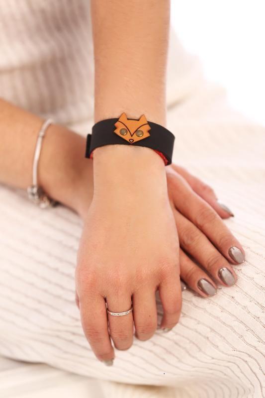 Стильний шкіряний браслет з коричневій шкіряній фігуркою лисиці посередині. Розмір 2 ширина, довжина регулюється . При замовленні від 250 грн доставка безкоштовна.
