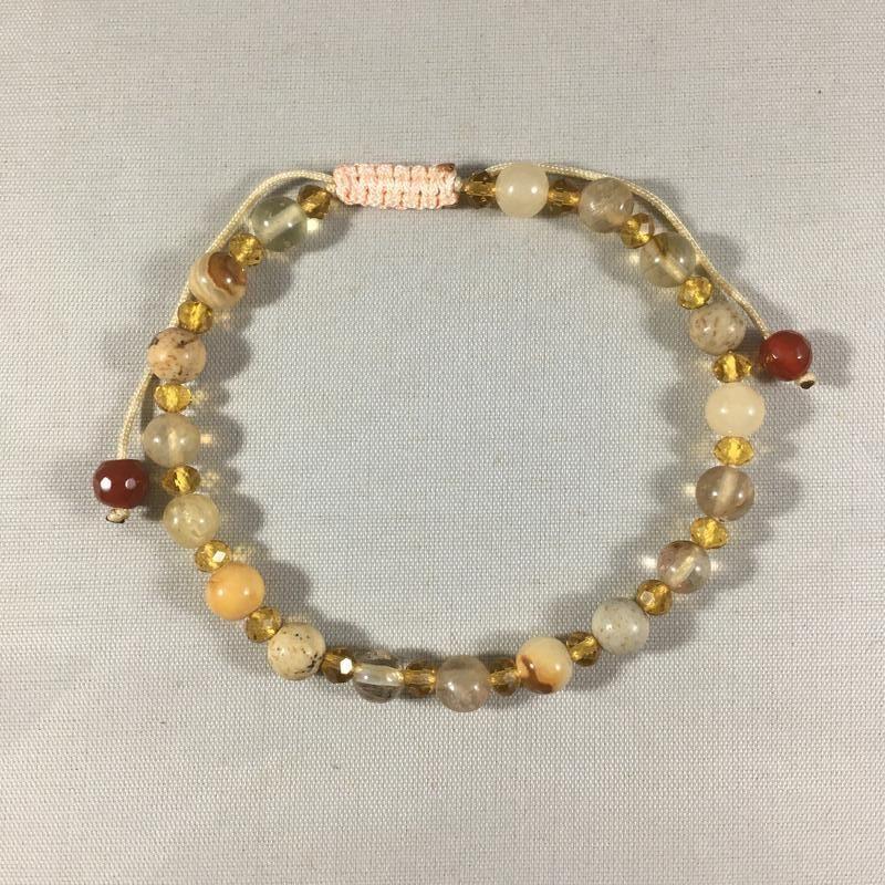 Для цього браслету використані бусини таких самоцвітів -декілька видів яшми, кришталь, онікс, халцедон.