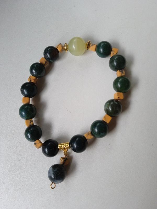 Браслет з натурального каміння «зелений бохо» з агату, яшми та оніксу