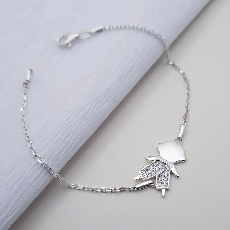 Срібний браслет з фіанітами "Хлопчик" -- це вишукана прикраса, яка поєднує в собі ніжність, символіку та неперевершений блиск. Центральний елемент цього браслета -- чарівна фігурка хлопчика, щедро інкрустована сяючими фіанітами, що додають прикрасі особливого шарму та елегантності. Виготовлений з високоякісного срібла, браслет відзначається своєю міцністю та вишуканим дизайном. Фігурка хлопчика символізує захист та турботу, роблячи цей браслет не лише стильним аксесуаром, але й оберегом, який приносить удачу та нагадує про важливі цінності в житті. Цей браслет ідеально підходить для тих, хто цінує стильні та символічні прикраси. Він легко поєднується з будь-яким образом, додаючи нотку витонченості та блиску як у повсякденному житті, так і на особливих заходах. Середня вага браслета -2,7 грама срібла 925 проби. Вага браслета залежить від довжини та може відрізнятися в один чи інший бік. В наявності всі розміри.