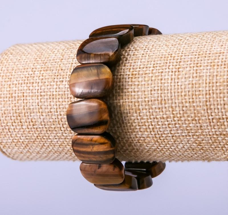 Браслет з натурального каменю Тигрове око 18х13мм обхват 18 см на гумці