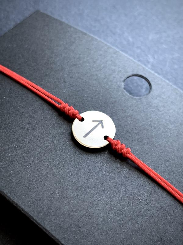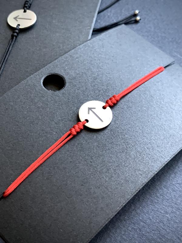 Матеріали: руна та інша фурнітура - ювелірна сталь. Нитка міцна поліестерова 0.8 мм. Колір червоний. Має вертикальний плетений замочок та чотири хвостика зі сталевими намистинками на кінцях. Розмір регулюється від дитячої ручки до середньої чоловічої. За запитом зроблю потрібний розмір.