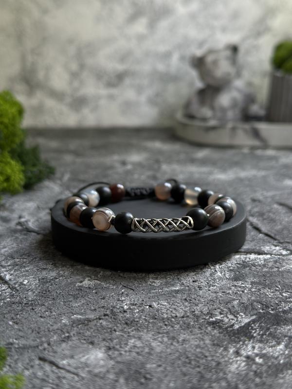 Розмір регулюється шамбальною застібкою, підійде на середнє чоловіче запʼястя від 16,5 до 19 см