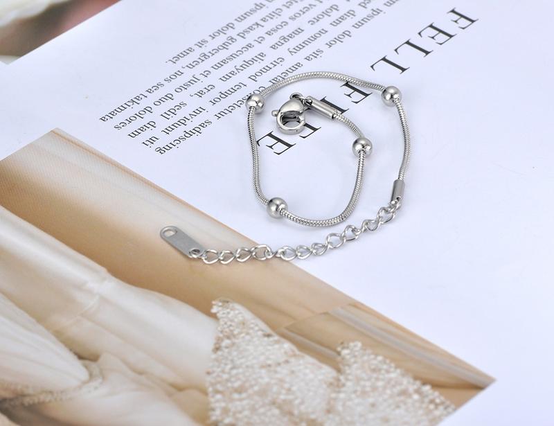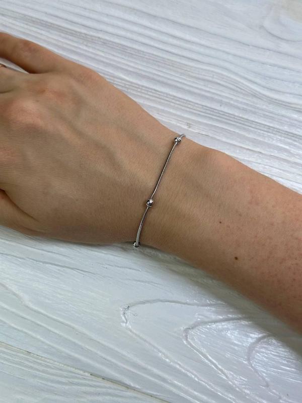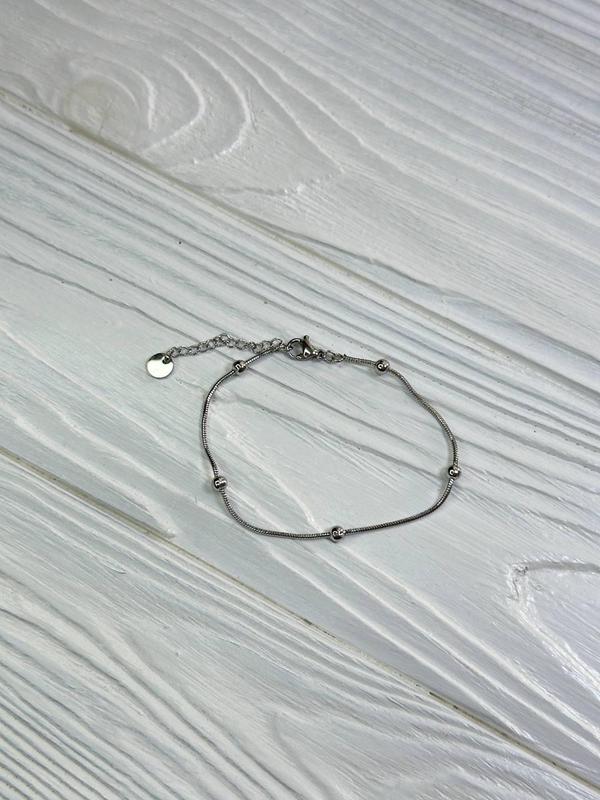 Жіночий регульований браслет медична сталь декор намистини колір сріблястий