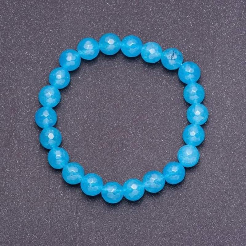 Браслет з натурального каменю Аквамарин, темно синій, діаметр 8 мм(+-), на гумці, обхват 18 мм