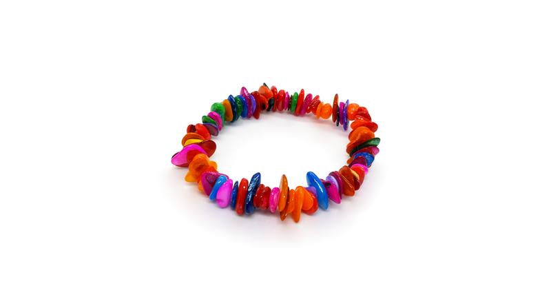 🌈🌞 Браслет-гумка з натурального перламутру крихта (внутрішня частина черепашки) тоновані із яскраві різнобарвні кольори. Дивіться відео-огляд (вгорі сторінки під фото) цього браслета , щоб побачити всю його красу. У продажу є кольє з тонованого перламутру в комплект (останнє фото). 🌈