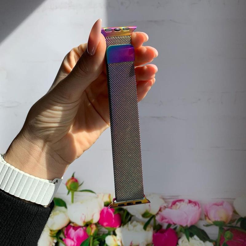 ❤️міланський сітчастий браслет з магнітною застібкою, додатковий шар алмазоподібного вуглецевого покриття з нержавіючої сталі на браслеті. Є 20 кольорах Apple Watch 38\40 та 42mm\44 - є всі кольори, що на фото у палітрах, обирай свій та замовляй, є ще захисні плівки та захисне скло на Apple watch.